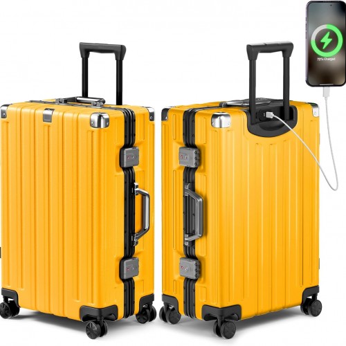 All Aluminum Magnesium Carry On Luggage,Cut from Whole Aluminum Sheet,22x14x9 Airline Approved ,(3rd Generation,Premium Magnesium Metal zipperless suitcase ) (silvery, 20+28inch)