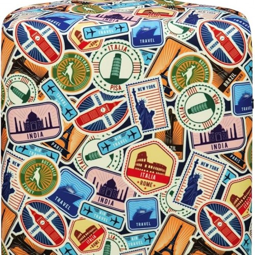 ANNA QUEEN Colorful Cat Luggage Cover, Artistic Blue Cat Design with Rainbow Colors, Stretchable, Washable Travel Sleeve for 32-34 Inch Suitcases