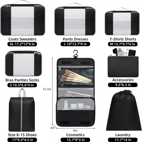 BAGAIL 6 Set/8 Set/10 Set Packing Cubes Various Sizes Packing Organizer for Travel Accessories Luggage Carry On Suitcase