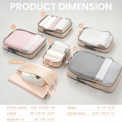 BAGAIL 6 Set Ultralight Compression Packing Cubes Packing Organizer for Travel Accessories Luggage Suitcase Backpack