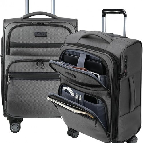 BAGSMART Expandable Carry On Luggage 22x14x9 Airline Approved, 20 Inch Travel Luggage with Spinner Wheels, Lightweight Hard Shell Suitcase Carry on Purplish Red