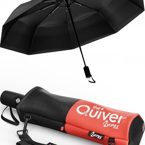 Balios Travel Folding Umbrella with Real Wood Handle Auto Open Close Vented Windproof Canopy – Designed in UK
