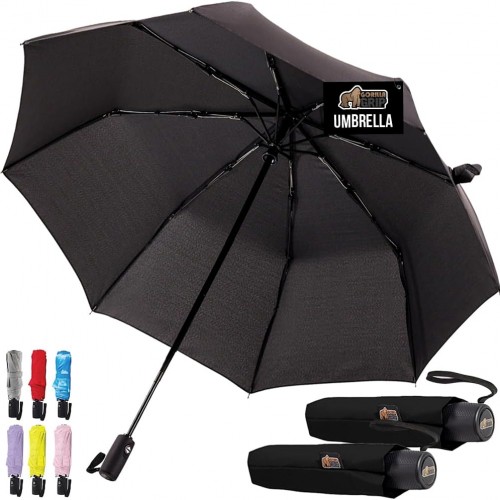 Balios Travel Folding Umbrella with Real Wood Handle Auto Open Close Vented Windproof Canopy – Designed in UK