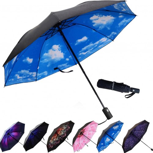 Balios Travel Folding Umbrella with Real Wood Handle Auto Open Close Vented Windproof Canopy – Designed in UK