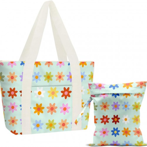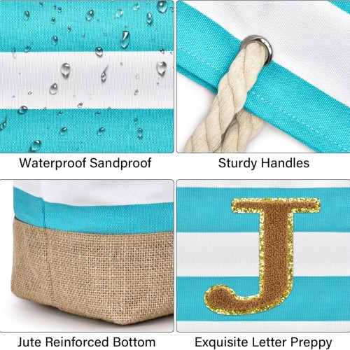 Becokan Beach Bag Initial Beach Tote with Makeup Bag for Travel Work Storage Personalized Birthday Gifts for Women Her