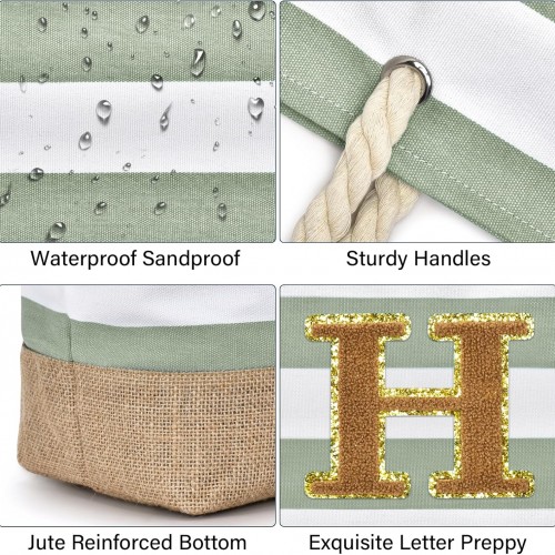 Becokan Beach Bag Initial Beach Tote with Makeup Bag for Travel Work Storage Personalized Birthday Gifts for Women Her