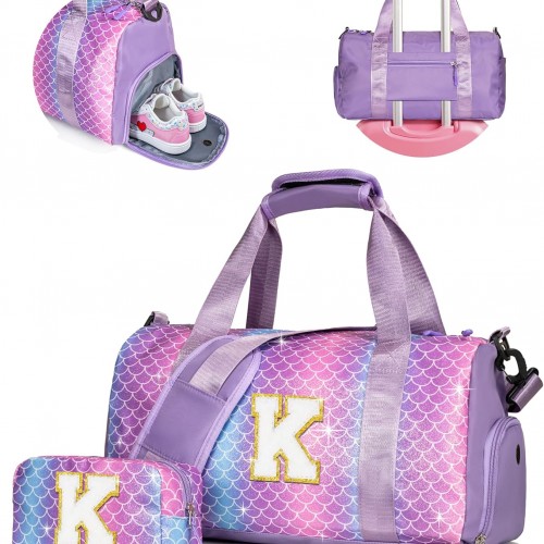Becokan Beach Bag Initial Beach Tote with Makeup Bag for Travel Work Storage Personalized Birthday Gifts for Women Her