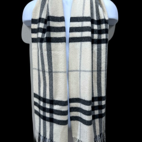 Burberry Tan & Blue Cashmere Novacheck Frindge Detail Men’s Scarf