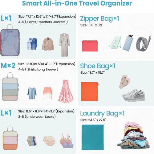 Cambond Compression Packing Cubes for Travel – 7 Set Multi-color See Through Mesh Compression Cubes for Travel Essentials with Large Laundry Bag, Luggage Packing Organizers Bags for Suitcases