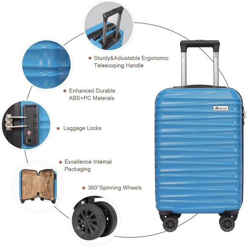 Carry on luggage 20 In suitcase with Spinner Wheels ABS & PC Hardside Luggage(Skyblue)