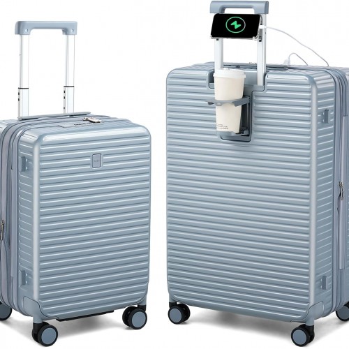 Carry On Luggage 22×14×9 Airline Approved, 20 Inch Lightweight ABS+PC Hard Shell Suitcases with Front Pocket, Spinner Wheels, TSA Lock (White, 1PC)