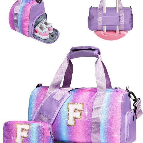 Cool Stuff for Teen-Girl Gym Bag with Shoe Compartment, Kid Personalized Weekender Ballet Bags, Initial Travel Tote with Makeup Pouch, Gift for 7 8 9 10 11 12 Year Old Girls (Letter S)
