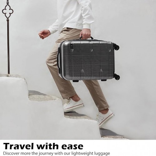 Coolife 3-Piece Luggage Set with Expandable 28-Inch Suitcase, PC+ABS Spinner (20/24/28 Inch, Charcoal)