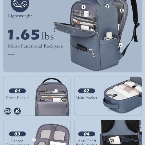 Coolife Luggage Sets 3 Piece, 20In Carry On Luggage with Spinner Wheels PC Hardside Suitcase Set with Travel Backpack (Blue, Backpack/TB/20)