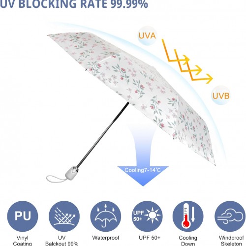 Cuby UV Sun Umbrella Compact Folding Umbrella lightweight Portable Manual Travel Umbrella for Rainproof & 99% UV Protection with Black Anti-UV Coating