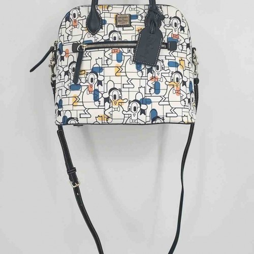 DOONEY & BOURKE White Blue Multi Canvas & Leather Print Satchel Purse