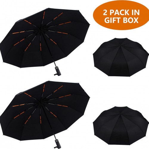 Double 10-Rib 46 Inch Compact Travel Umbrella for Rain – Sturdy Portable Windproof Umbrella – Small Automatic Folding Umbrella