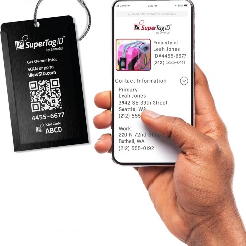 Dynotag® Web Enabled Smart Aluminum Convertible Luggage ID Tag + Braided Steel Loop, with DynoIQ™ & Lifetime Recovery Service (Midnight Black)