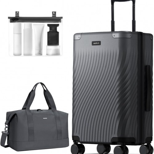 ECOHUB Hardside Expandable Carry On Luggage Sets, Recycled PC 20/24″ Rolling Luggage Airline Approved with Spinner Wheels & TSA Lock, Lightweight Hardshell Travel Suitcase, 20+24 inch Carry-on Grey