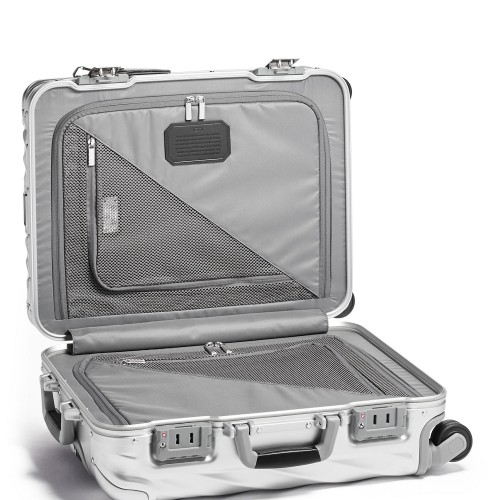 - Zip entry to main compartment with security zipper, 3-stage telescoping handle, 4 recessed dual spinner wheels, Zipper expansion (up to 2″ or 5 cm), Retractable top and side grab handles, Integrated TSA lock, Luggage tag, TUMI Tracer®, Anti-microbial treated shell and zippers and grab handles.