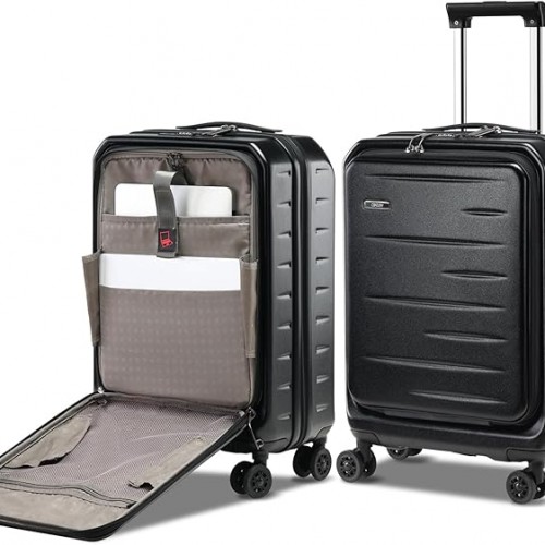 feilario 20in Aluminium Frame PC Hard Shell Spinner Wheels Luggage, Built-In TSA lock Carry on Suitcase, with Cup Holder, USB Port, Phone Holder