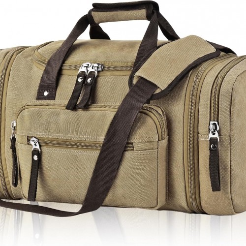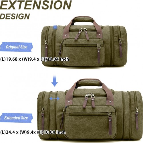 Felipe Varela Green 40L Canvas Duffel Bag for Men, Expandable Travel Gym Overnight Carry On Bag