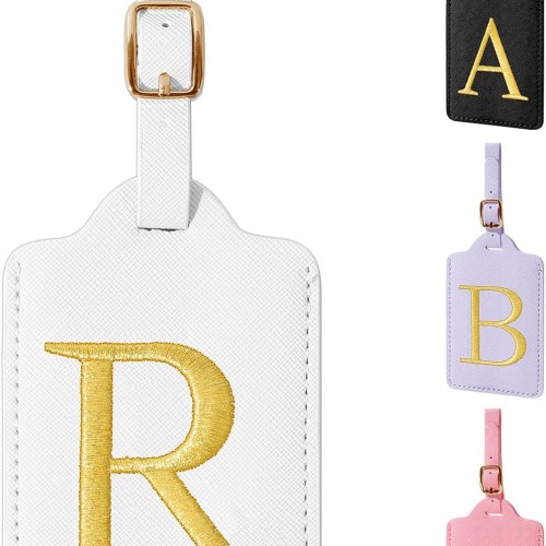 FESAS 3 Pack A-Z Alphabet Luggage Tags – Faux Leather Suitcase Tags with Privacy Cover & Replaceable Card – Initial Letter Monogram for Bags (Yellow)