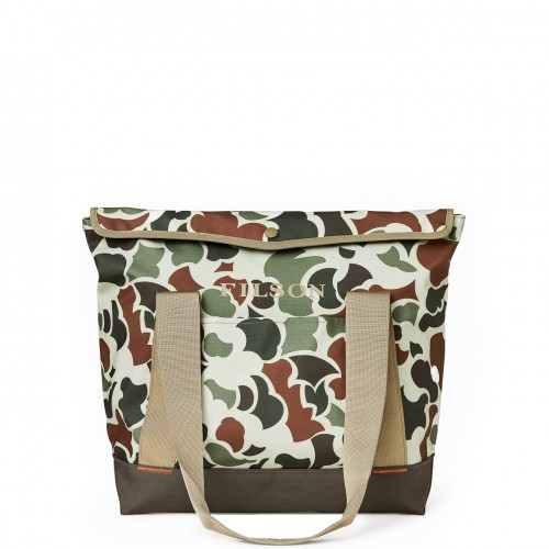 The Filson Tin Cloth Tote Bag With Zipper combines toughness and practicality for daily use. Crafted from water-resistant oil-finished Tin Cloth, it stands up to harsh weather while maintaining durability. Inside, a fully lined interior with pockets keeps your belongings organized. Strong cotton webbing handles and a reliable metal YKK zipper ensure your items stay secure. Perfect for work, travel, or everyday carry, this tote delivers dependable performance wherever you go.