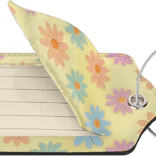 Flowers Leather Luggage Tag with Stainless Steel Ring, Fun Name Id Card Cover Travel Bag Tag Set, Suitable for Travel Bag Luggage Women Men 1 PCS