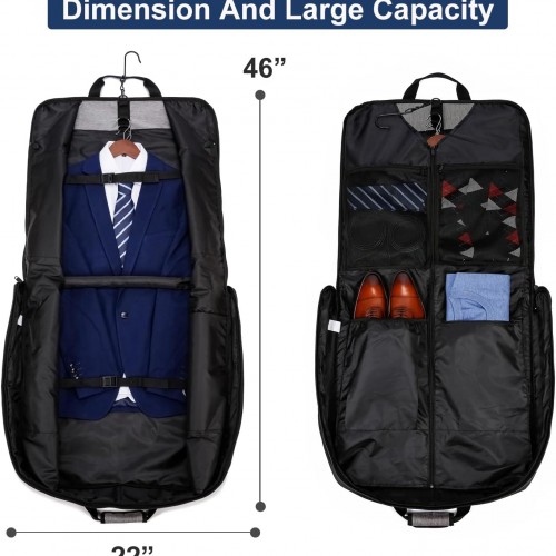 Garment Bag Travel Suit Bag for Men Large 40-Inch Carry on Garment Bag Up to 3 Suits for Business Trips,2 in 1 Hanging Suitcase Luggage Bags for Travel,Foldable Carry On Bag Fits 15.6Inch Laptop,Black