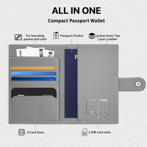 Genuine Leather Passport Holder, RFID Blocking Travel Wallet for Men/Women, Stylish Passport Cover with Airtag Slot, Durable Passport Wallet case travel essentials (Gray)