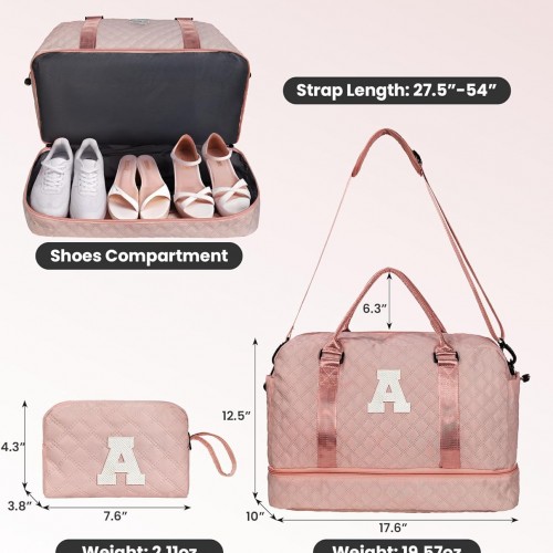 Gift for Girls – 5 6 7 8 9 10 11 12 13 14 15 16 Year Old-Duffle Bags with Shoe Compartment, Personalized Weekender Bag, Travel Bag with Makeup Bag, Gifts for Women Birthday Unique (Letter H)
