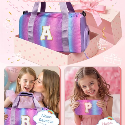 Gifts for 4 5 6 7 8 9 10 Year Old Girls-Girl Gym Bag with Shoe Compartment, Kid Personalized Weekender Overnight Bags, Initial Travel Tote with Makeup Pouch, Gift for Daughter (Letter G)