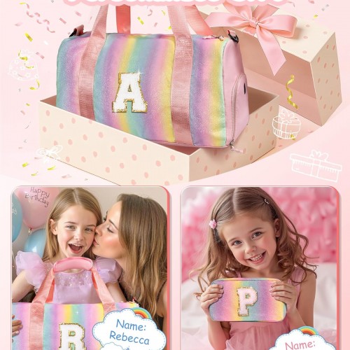 Gifts for Daughter-Girl Gym Bag with Shoe Compartment, Kid Personalized Weekender Overnight Bags, Initial Travel Tote with Makeup Pouch, Gift for Granddaughter Sister Niece (Letter H)