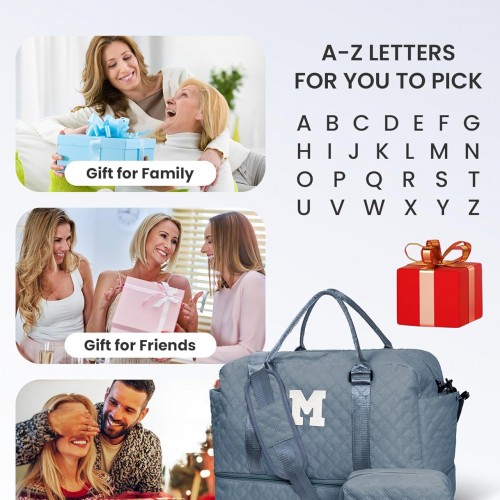 Gifts for Girls-Duffle Bag with Shoe Compartment, Personalized Weekender Bag, Overnight Bags for Women, Letter Travel Bag with Makeup Bag,Tween Girls Trendy Stuff Gift (Letter B)