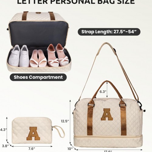 Gifts for Girls-Initial Duffle Bag with Shoe Compartment, Personalized Weekender Bag, Monogram Overnight Letter Travel Bag with Makeup Pouch, Tween Girls Trendy Stuff Gift (Letter B)