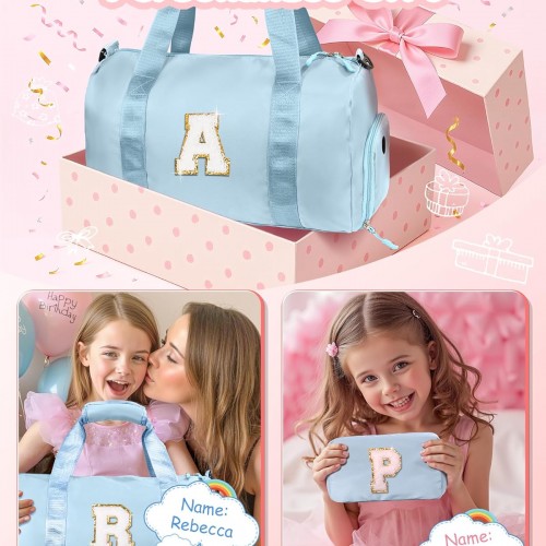 Gifts for Niece-Girl Gym Bag with Shoe Compartment, Kid Personalized Weekender Overnight Bags, Initial Travel Tote with Makeup Pouch, Birthday Gift for Sister Granddaughter (Letter J)