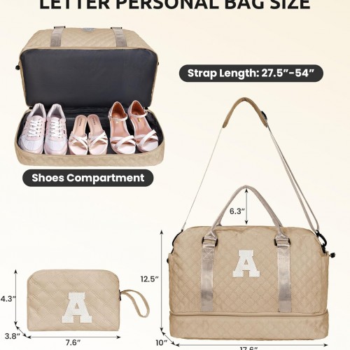 Gifts for Teen Girls 16-18, Birthday Gift-Initial Travel Bag with Shoe Compartment, Personalized Weekender Bag, Monogram Overnight Bag for Women, Letter Travel Bag with Makeup Bag (Letter Z)