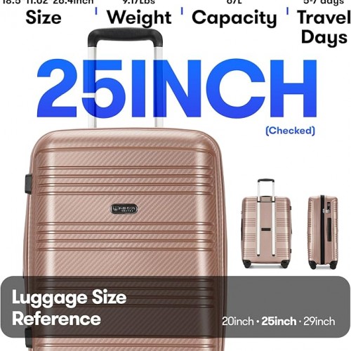 GinzaTravel 25 Inch Medium Checked Luggage Lightweight Suitcase with Spinner Wheels TSA Lock, Rose Gold