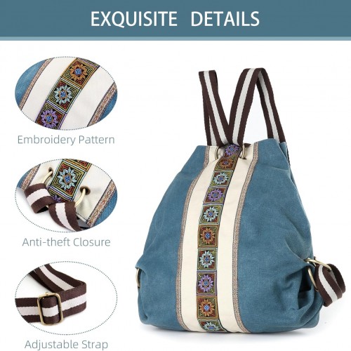 - Unique embroidery bag. Made by high quality Canvas, Copper buckle and zipper. Soft Casual style and Lightweight.