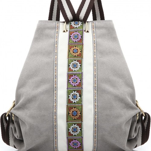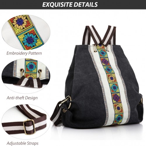 Goodhan Women Canvas Backpack Daypack Casual Shoulder Bag, Vintage Heavy-duty Anti-theft Travel Backpack Grey Black 2