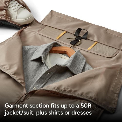 - PACKS A PUNCH, KEEPS CLOTHES PRISTINE: Garment compartment keeps suits (up to 50R), dresses, and dress shirts wrinkle-free and ready to wear. The 45-liter duffel holds 3-5 days’ worth of clothes with dedicated interior shoe pockets (Size M13).