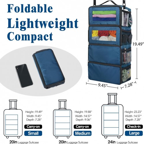 Hanging Travel Organizer, Carry on Luggage Suitcase Organizer, Travel Essentials Portable Travel Shelves Packing Cube for Travel Cruise Small,Navy Blue