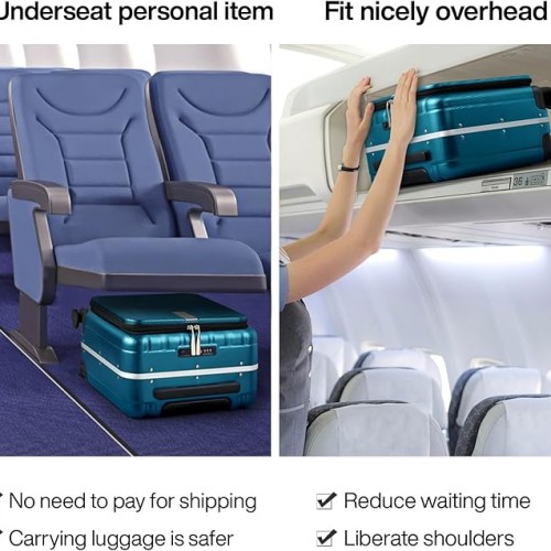 - 【DIMENSION】Hanke 16 inch top opening Underseat carry on luggage measures overall dimensions is L14 * W9 * H17.9″(include handles,wheels and protective feet). Internal Dimensions: L13.5 * W15.1 * D7.8″, capacity≈26.2L, weight 6.4LB. Airline approved carry on luggage, fit under the seat and fit in the overhead bin,It can also be used as a personal item,it’s a best lightweight luggage. This suitcase can also be a great wedding gift and vacations,birthday gifts and christmas gifts