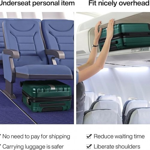 Hanke 16 Inch Underseat Carry on Luggage with Wheels,Small Hard Shell Suitcases for Weekender,Tsa Approved Lightweight Travel Luggage Suitcase for Womem Men,Blackish Green.