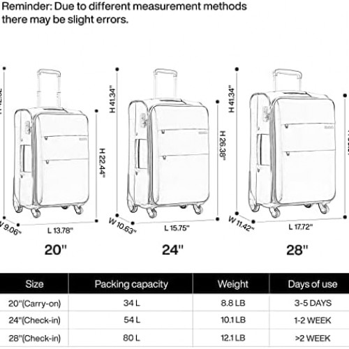 Hanke 20/24/28 Inch 3 Piece Luggage Set with Spinner Wheels Expandable Luggage Large Suitcases with Wheels Softside Checked Luggage Rolling Suitcase with Lock Lightweight Travel Luggage.(Dark Gray)