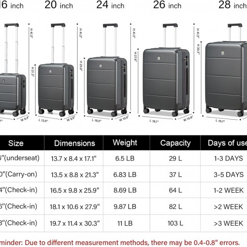 - 【Product Dimensions】 20 inch carry on(including wheels and handles) L13.5 x W8.8 x H21.3 IN, 37L, 6.83LB, international carry on luggage 22x14x9 airline approved spinner wheels & can fit in the overhead bin.