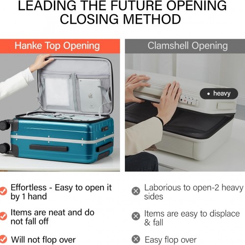 Hanke 20 Inch Carry On Luggage with Wheels PC Hard Shell Suitcase Top Opening Aluminum Frame Tsa Luggage Suitcases for Travel Woman Men Christmas Gifts for Birthday,Caribbean Blue.