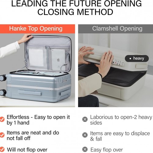 Hanke 20 Inch Carry On Suitcase PC Hardshell Luggage Top Open Aluminum Frame Rolling Suitcases with Wheels Travel Luggage for Woman Men Gifts.(Grey)