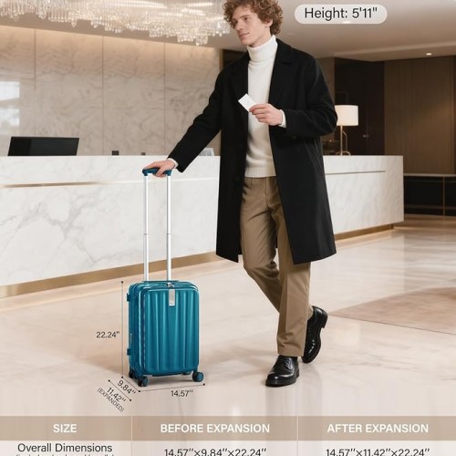 Hanke 20 Inch Expandable Carry On Luggage Airline Approved Top Opening Hard Shell Suitcases with Wheels Lightweight Travel Luggage Carry On Suitcase for Woman Men-Caribbean Blue